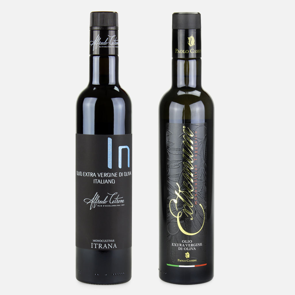 Alfredo Cetrone und Paolo Cassini haben eines gemeinsam: beide erzeugen sortenreine Olivenöle mit absoluter Hingabe. Alfredo Cetrone aus dem Latium hegt, pflegt und kennt die Sorte Itrana wie kein Zweiter und holt ein perfektes Extra Vergine aus seiner modernen Mühle. Paolo Cassini ist ebenso bemüht und macht wahrscheinlich das beste Taggiasca-Olivenöl in Ligurien. Wir haben deshalb dieses Duo geschnürt, damit Sie die beiden Sorten in ihrer vollendeten Form entdecken können. Nicht nur, aber auch weil sie so unterschiedlich sind, etwas ganz besonderes!