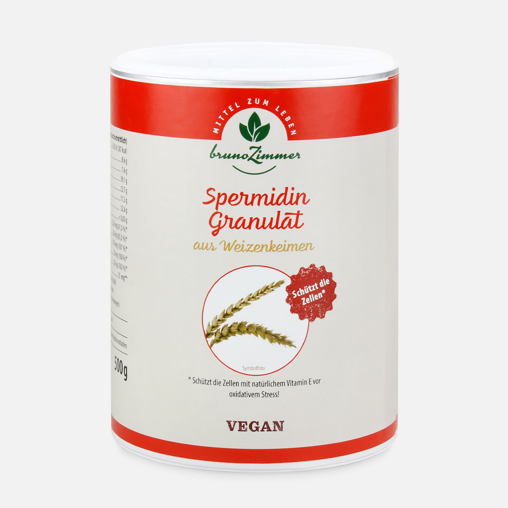 Weizenkeime sind zudem von Natur aus reich an Kalium, Phosphor, Magnesium, Vitamin E und Folat. Das Spermidin Granulat trägt damit